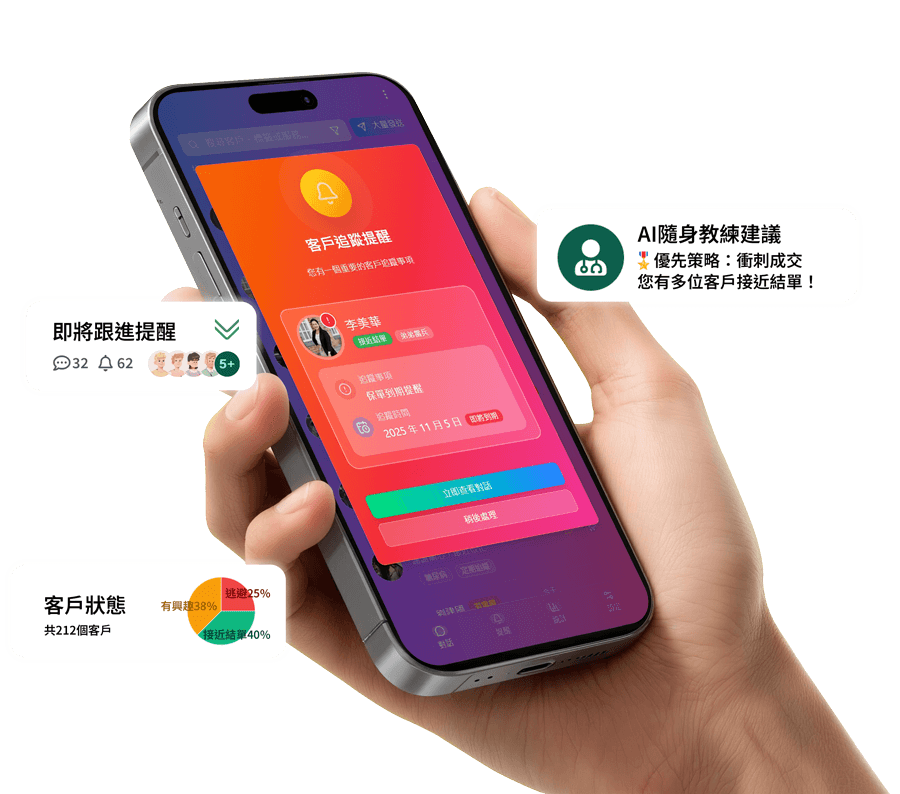 這不只是一個App,而是一套基於通訊軟體為您整合「客戶關係管理」、「AI溝通策略」與「數據化決策」的致勝系統。