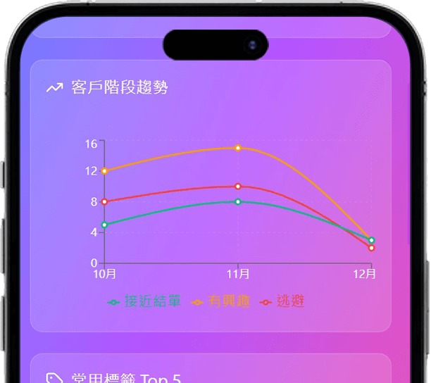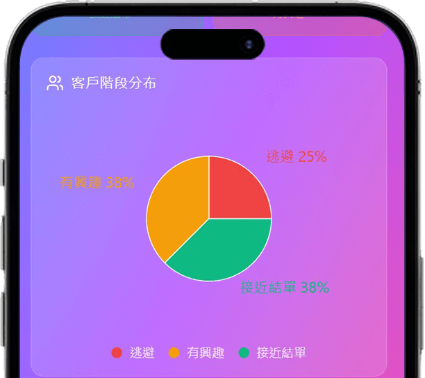客戶階段分布:自動整理每位客戶所處階段,讓你清楚看到整體進度。
